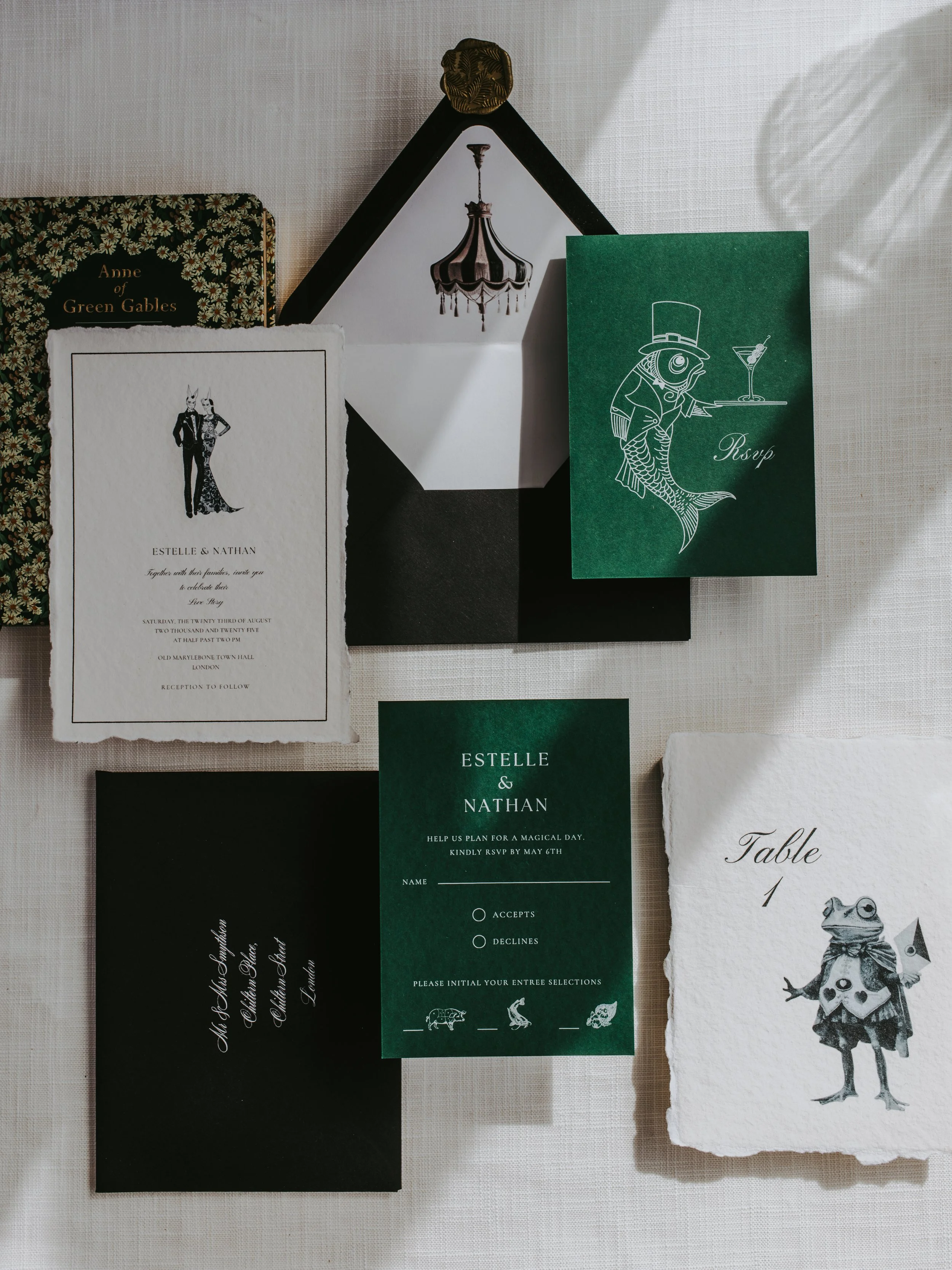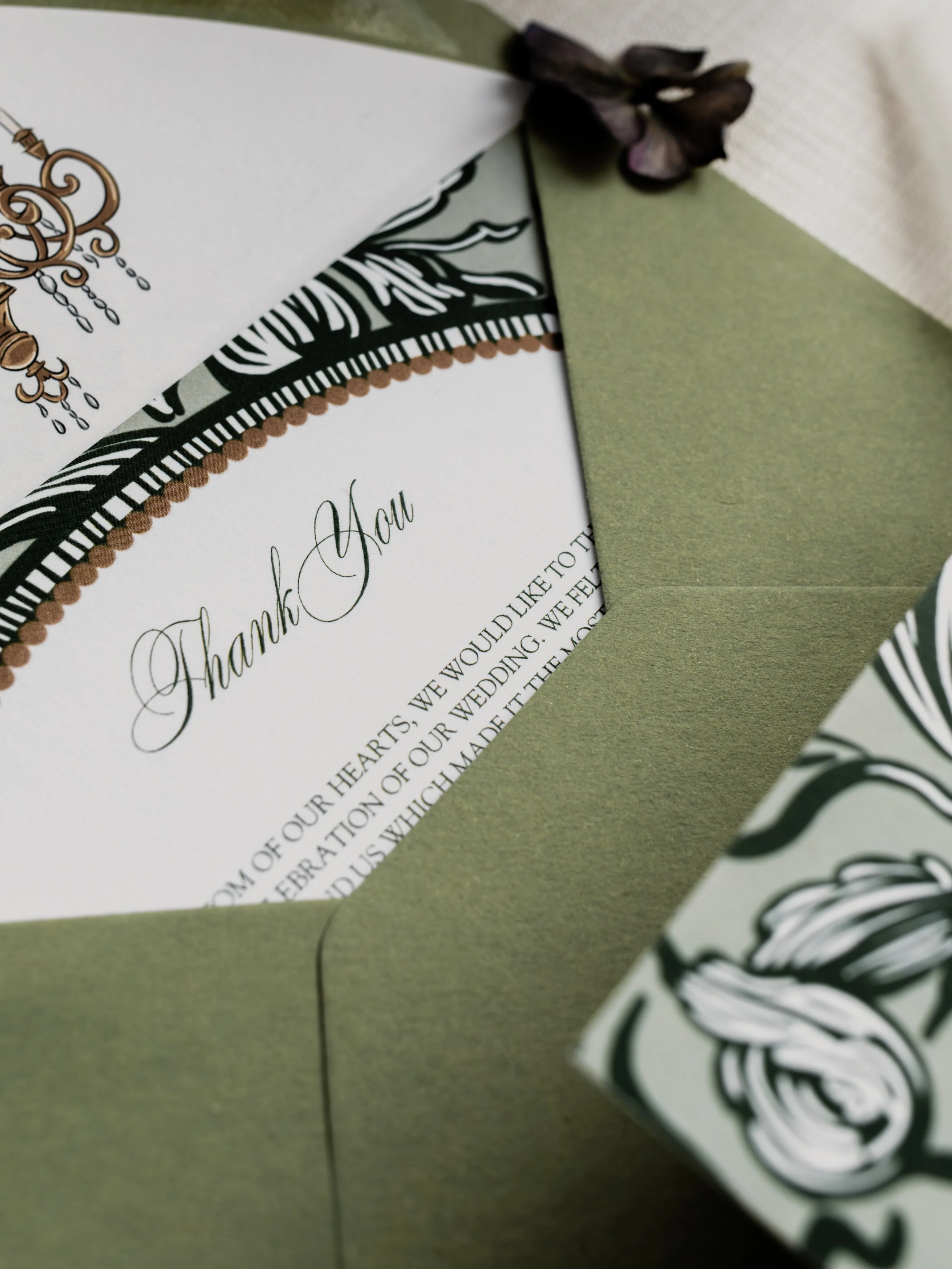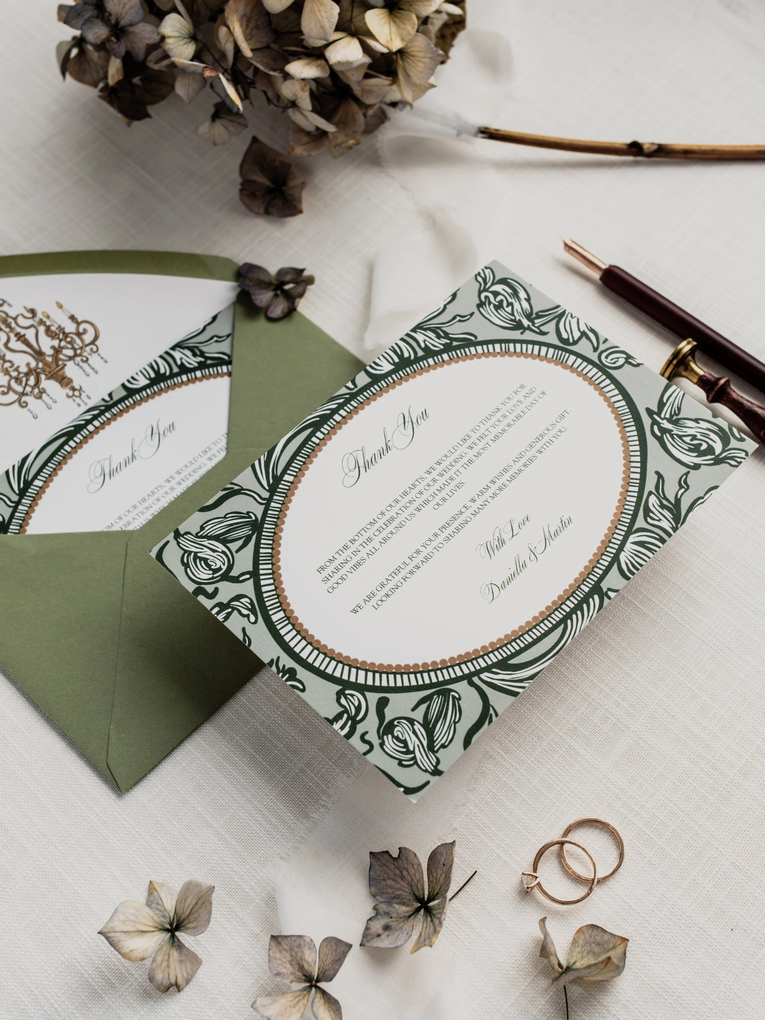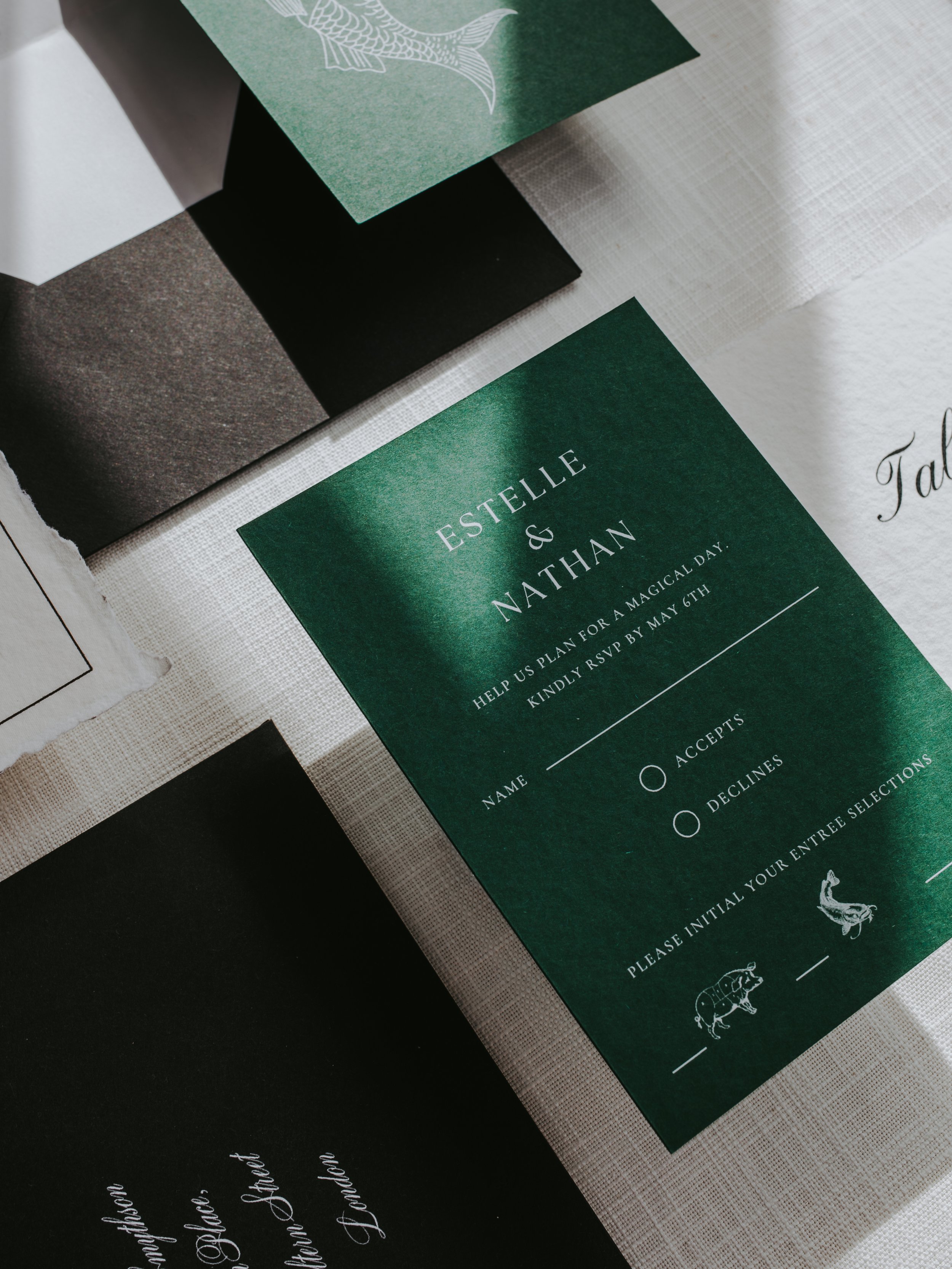 Our designs are printed on premium paper stocks, finished with foil detailing, and bespoke envelopes, offering a truly luxurious touch.